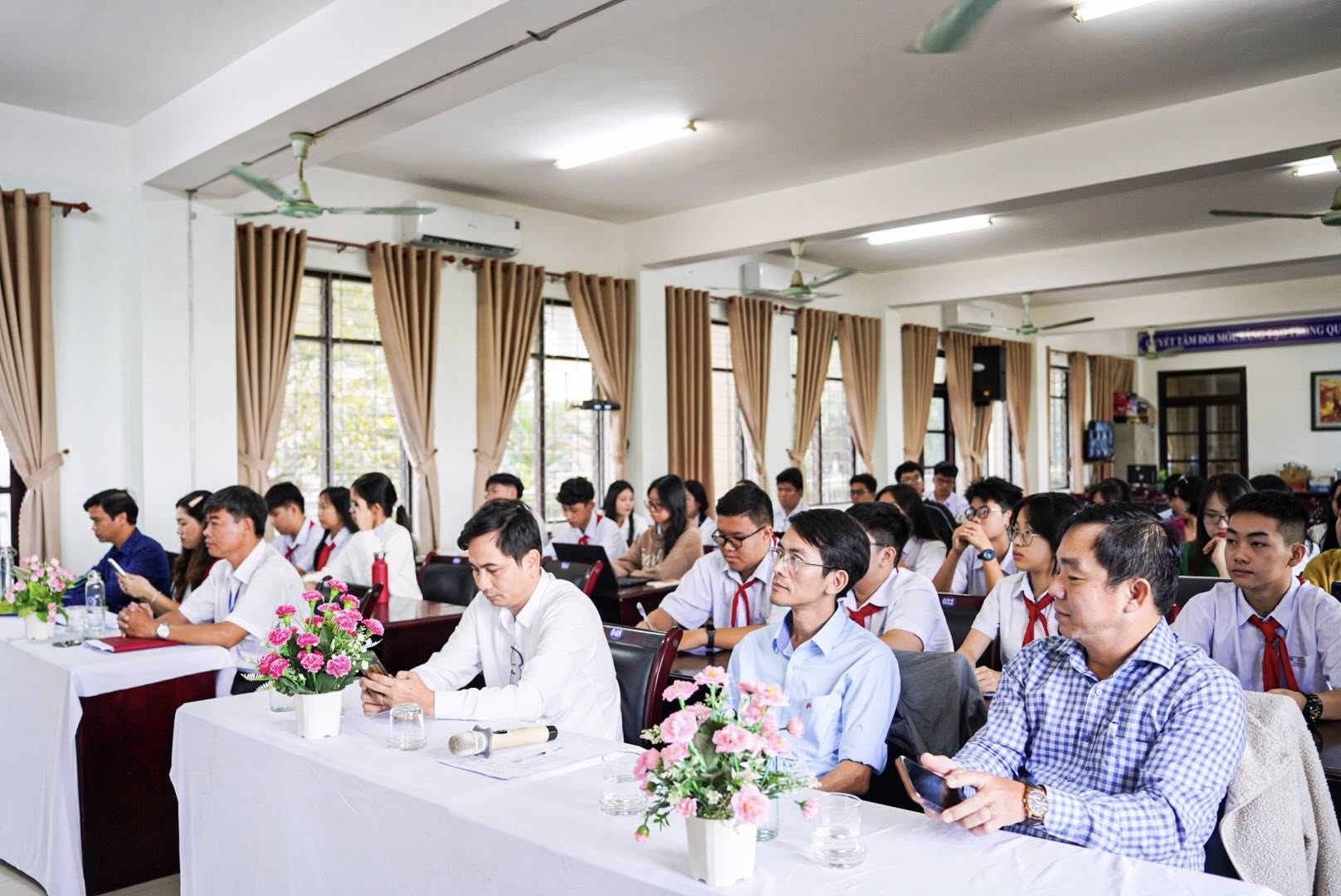 Trong phần phát biểu khai mạc, thầy Nguyễn Văn Lộc – Phó Hiệu trưởng nhà trường đã khẳng định tầm quan trọng của hoạt động nghiên cứu khoa học đối với sự phát triển tư duy và năng lực của học sinh trong kỷ nguyên mới. Thầy cũng nhấn mạnh các định hướng, tiêu chí và quy định của Sở GD&ĐT, giúp thầy cô và học sinh hiểu rõ hơn quá trình triển khai đề tài theo đúng chuẩn mực.