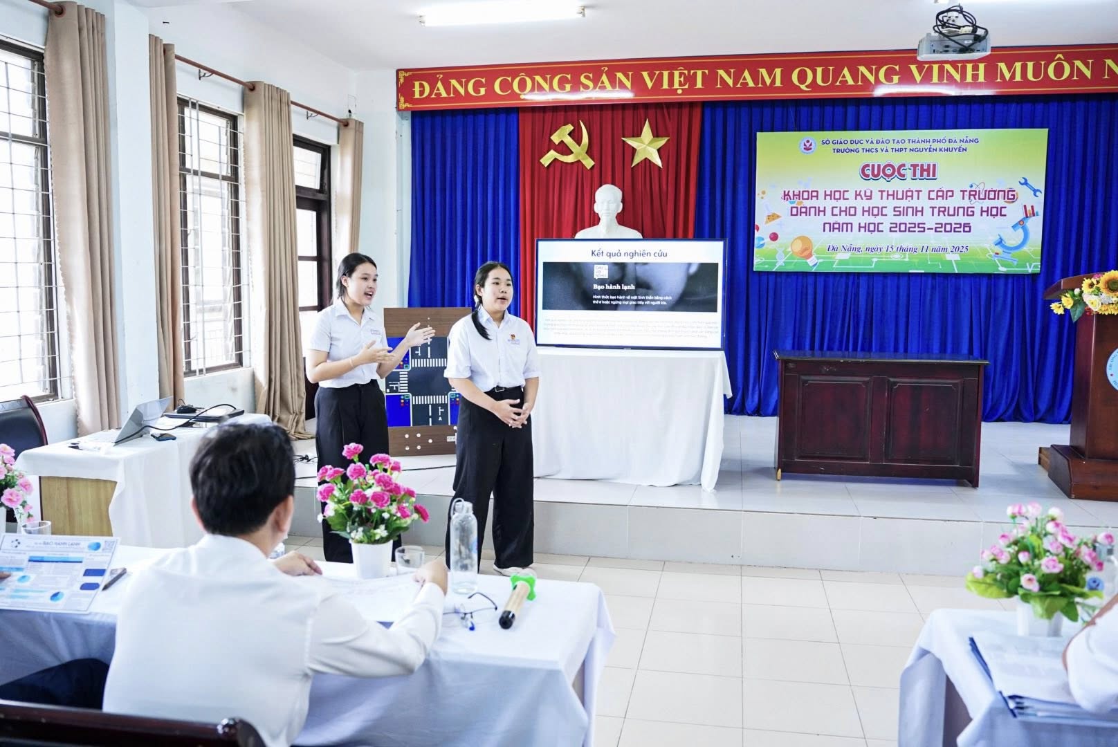 Sáng ngày 15/11/2025, Trường THCS và THPT Nguyễn Khuyến đã long trọng tổ chức Cuộc thi Khoa học Kỹ thuật cấp trường – sân chơi học thuật dành cho những học sinh đam mê khám phá, nghiên cứu và sáng tạo trong năm học 2025 – 2026. Đây không chỉ là một cuộc thi, mà còn là hành trình để các em trải nghiệm môi trường khoa học thu nhỏ, nơi mỗi ý tưởng được nuôi dưỡng bằng tư duy phản biện và khả năng triển khai logic, bài bản.\