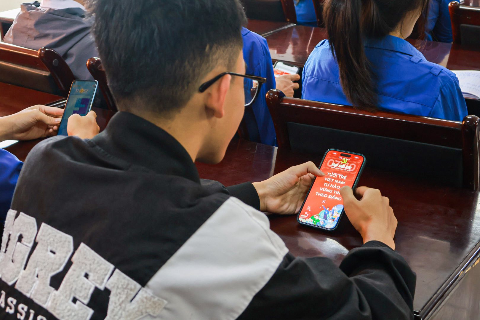 Bên cạnh nghi thức truyền thống, Đoàn trường đã sáng tạo phát động phong trào “Thay ảnh nền – Thể hiện niềm tin”. Hoạt động kêu gọi đoàn viên, thanh niên thay hình nền điện thoại, máy tính bằng các mẫu tuyên truyền chính thức của Đại hội đã nhận được sự hưởng ứng nhiệt tình. Những hình ảnh đầy ý nghĩa này không chỉ trang trí cho thiết bị cá nhân mà còn trở thành lời nhắc nhở mỗi ngày về tinh thần trách nhiệm, sự đồng hành của tuổi trẻ với vận mệnh đất nước.