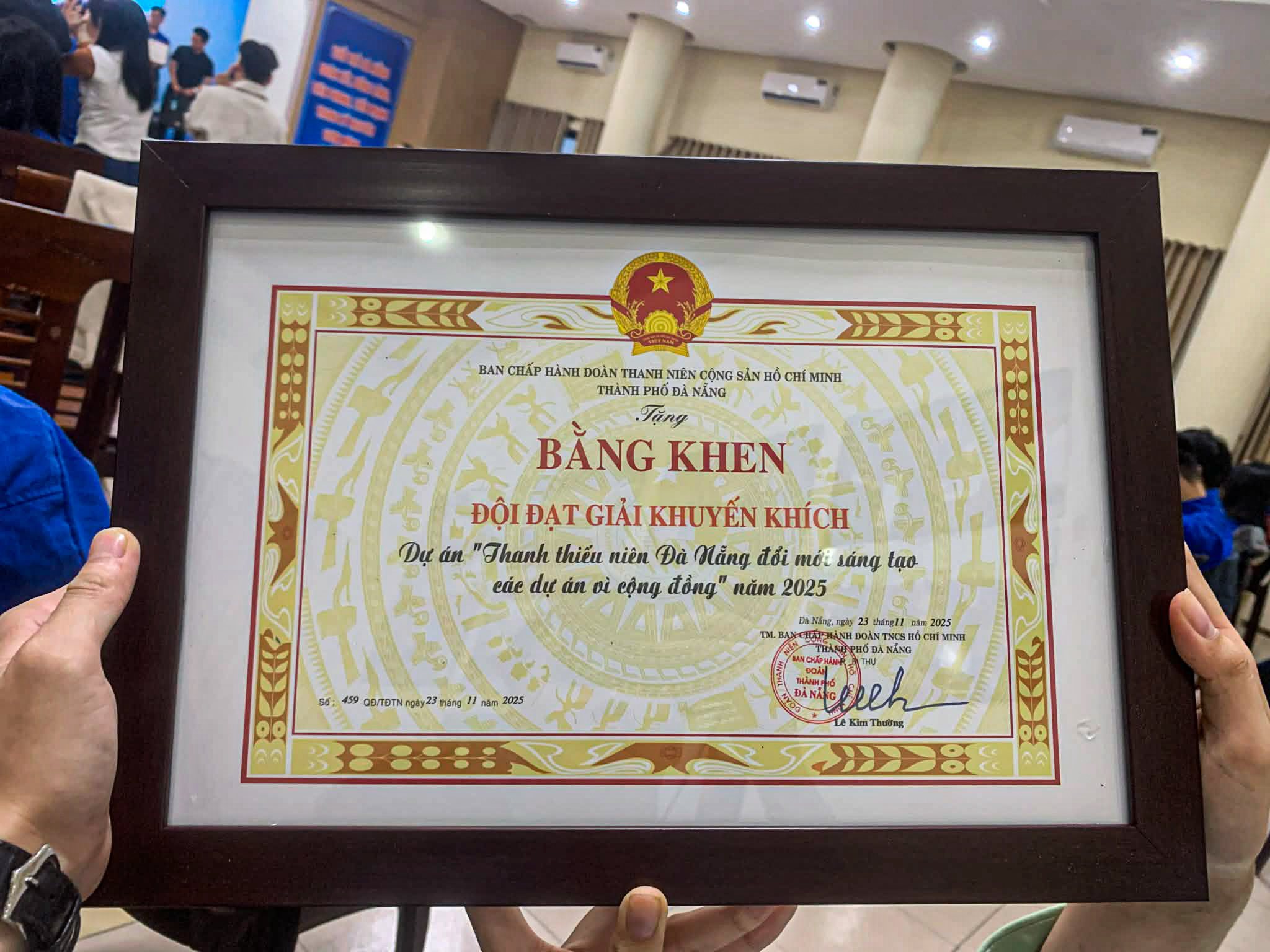 Bên cạnh đó, dự án “Thanh thiếu niên Đà Nẵng đổi mới sáng tạo các dự án vì cộng đồng” cũng đã vinh dự nhận Giải Khuyến khích. Giải thưởng này ghi nhận tinh thần dám nghĩ, dám làm, khả năng nghiên cứu và vận dụng kiến thức vào thực tiễn để giải quyết các vấn đề cộng đồng của các bạn học sinh.